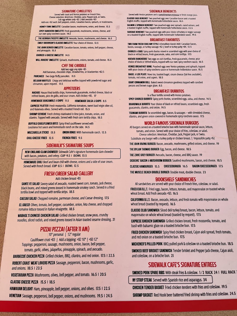 In summary, The Sidewalk Cafe is a perfect spot to indulge in flavorful American-style dishes while soaking up the vibrant atmosphere of Venice Beach. Whether you’re craving a hearty meal or a light snack, this cafe promises a satisfying experience. Just remember to bring your appetite!